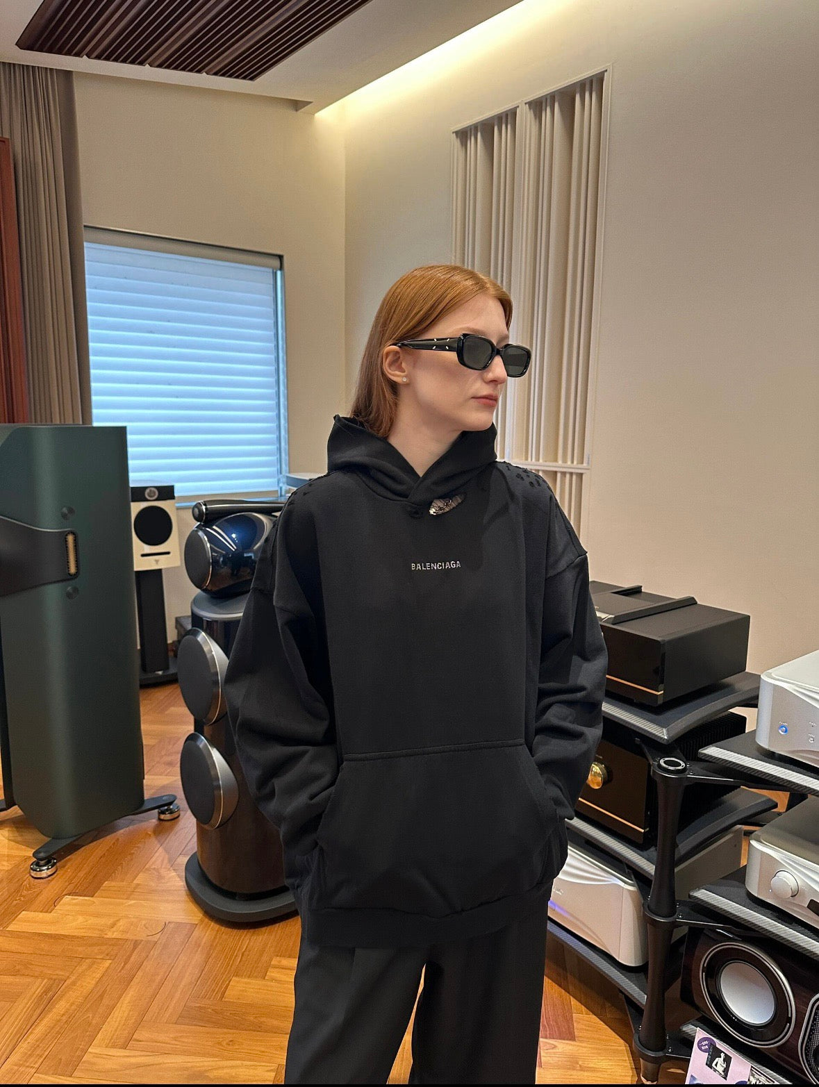 2026 New Arrival: Balen Rhinestone-Embellished Hooded Distressed Sweatshirt (25252-B80)
