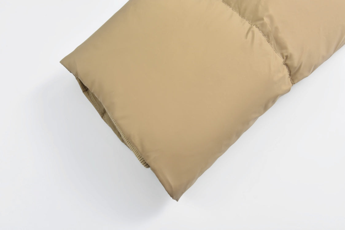 Made from carefully selected recycled polyester fiber yarns, the main fabric is 400T recycled nylon fabric. Even after the finished fabric is dyed and waterproof, it can still maintain the softness and waterproof breathability of the fabric. Both the collar and the inner lining of the hat are made of custom-checked 80 cashmere blended fabric. The filling is made of high-quality 410-gram 90 goose down certified by RDS, maintaining the original softness, elasticity and hand feel of the down. It is made of three-layer anti-penetration fabric and four-layer locking down process. The buttons are equipped with a hidden double-sided zipper opening and a hidden side zipper pocket. The sleeves are decorated with a three-dimensional silicone brand logo. There is an elastic pig nose buckle. All three standard accessories are fully set, perfectly restoring the original appearance, comparable to purchasing on behalf of others. Unfasten the detachable sleeves to create a vest look. One piece of clothing can be worn in two ways.