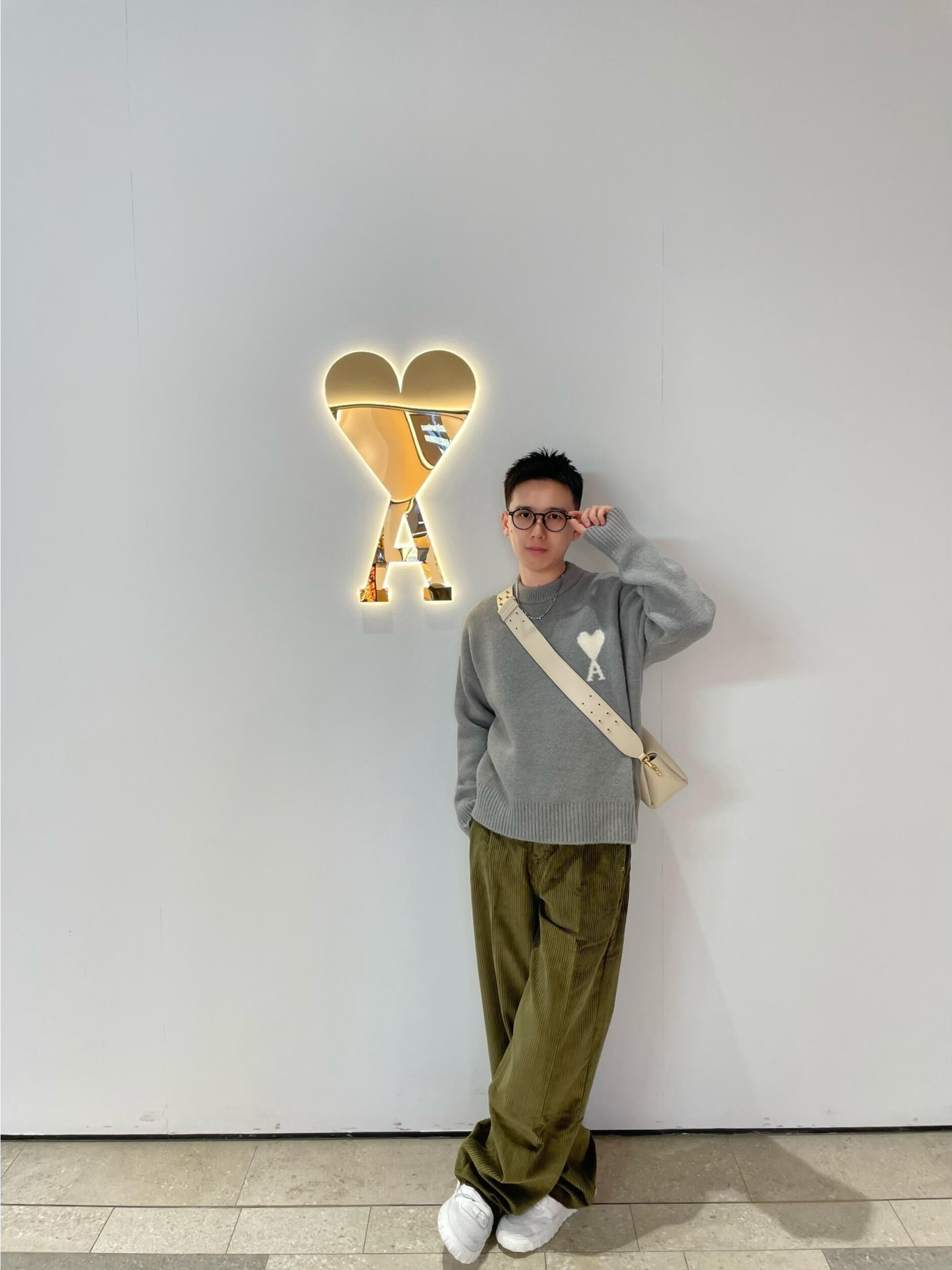 The custom-woven and custom-dyed luxurious Merino wool is soft, fine and comfortable to the skin. With the high-end morning mist gray as the ink, the gentle riot of grayscale aesthetics. A contrasting color heart on the chest appears on it, quietly emitting its unique charming glow. The brand has a high recognition rate. The elegance and casualness of French fashion are the ultimate simplification of colors, and it also conveys the love and persistence for life, encountering the ultimate simplicity The undisputed king of versatility