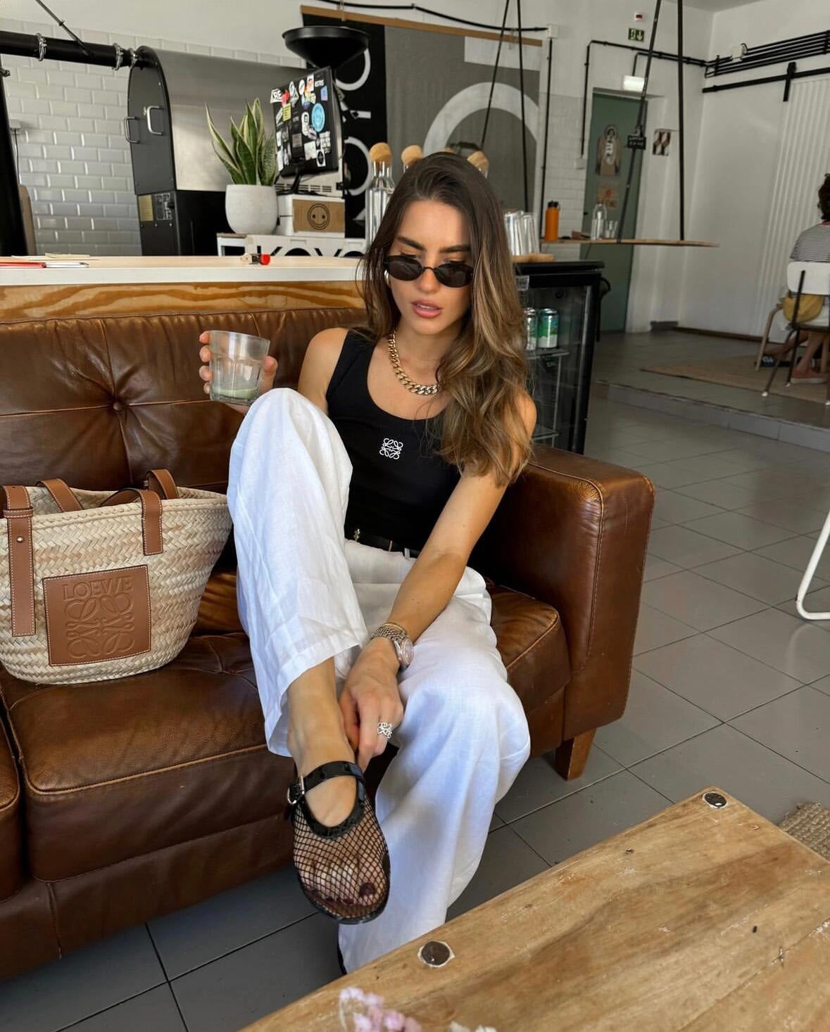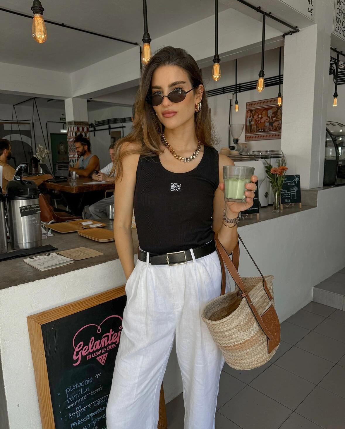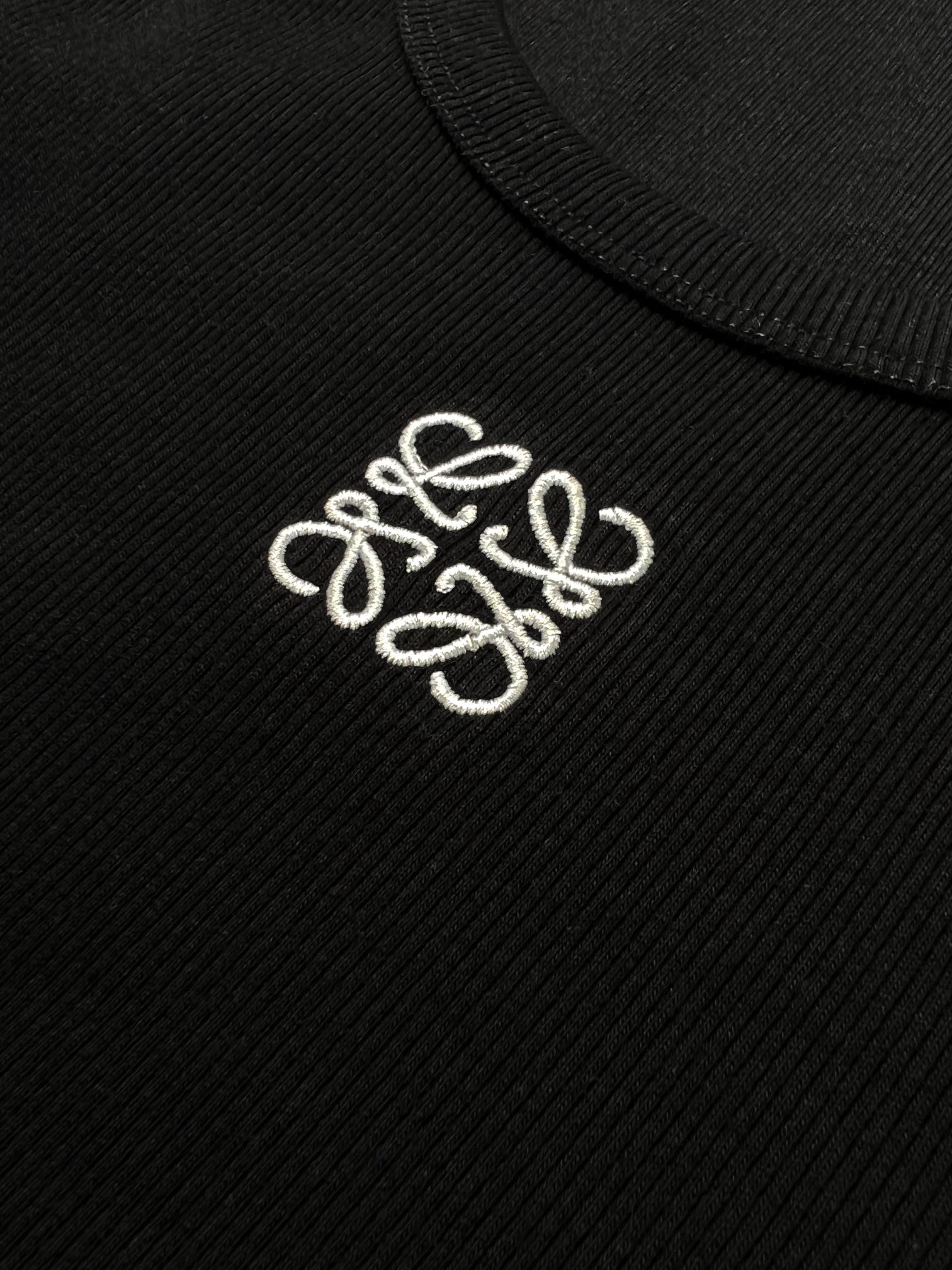 The custom-woven elastic threaded satin is soft, delicate and comfortable. The pure black base tone sets the versatile tone. The Anagram embroidery mark is dotted on the chest, condenses the brand's essence in a minimalist form. The neat cut conforms to the body curve, casual and free. It is undoubtedly the versatile king