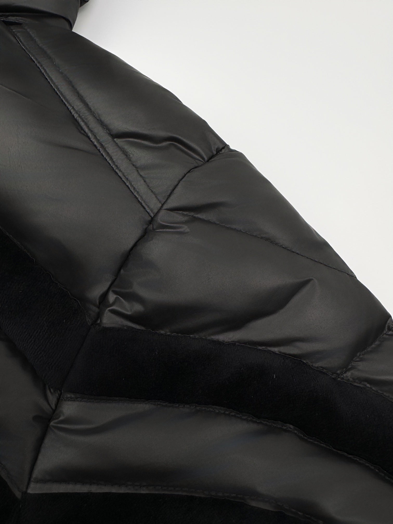 Customized Ink Charm high-end carbon black coated windbreaker fabric, custom-made Korean charm flowing light velvet knitted fabric, made of 400D calendrated inner fabric, national standard 95 white duck down (welcome to test), with generous down filling, excellent warmth retention, light and fluffy. Crafted with meticulous care, this co-branded series is decorated with the Batman logo on the front, inspired by this renowned superhero, making it highly recognizable The iconic Moncler embroidered logo is presented on the sleeve, highlighting the brand's style. It is a tribute to the classics and an interpretation of modern fashion. Lock in body temperature, enjoy warmth and comfort, and become the most considerate companion in winter