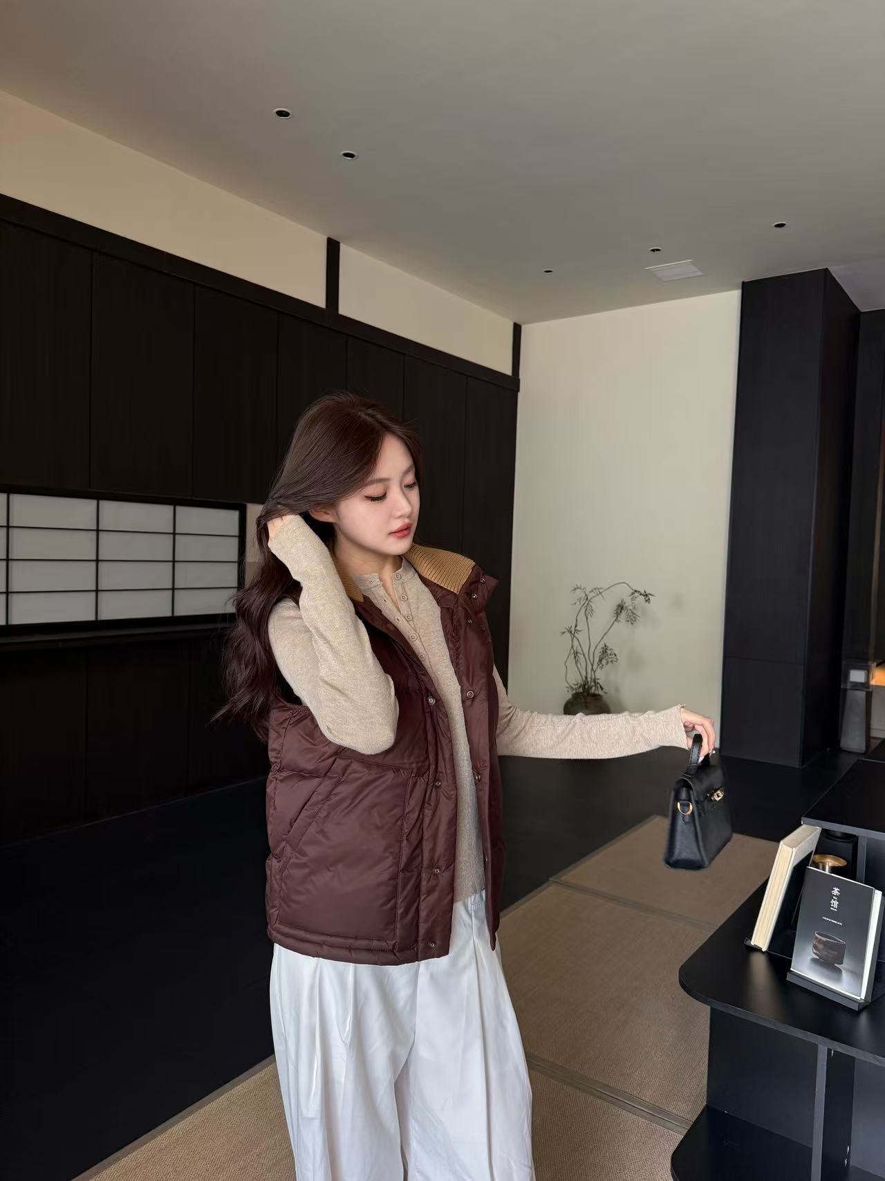 The ribbed wool high collar is woven from fine wool, with moderate elasticity. It can closely conform to the curve of the neck, providing windproof and warm warmth without any gaps, and gently protecting sensitive skin. Down filling: Filled with 180g of high-quality white duck down, it has a high down content and excellent fluffiness.